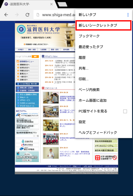 ※Android版Google Chromeのメニューの「新しいシークレットタブ」からも同じ操作をすることができます。